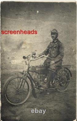 He was wearing a spike helmet and had an iron cross. 1916 RARE RPPC PHOTO "WWI GERMAN WANDERER MOTORCYCLE & JEWISH SOLDIER".