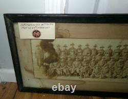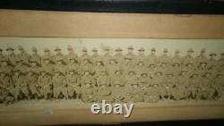 Has some very old water damage (especially to the top left corner). 41 3/4 inches x 12 1/2. The panoramic photo that is visible measures approx. 35 1/2 x 7 inches.