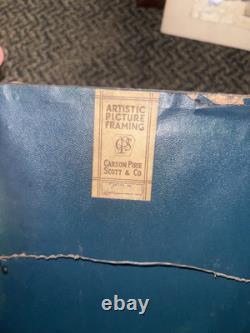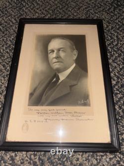This photograph originates from the estate of General William McChesney in Libertyville, Illinois. The estate suffered fire damage in the 1950s, and this photograph, along with other historical artifacts, has been stored in a garage for over 75 years. This piece has not been publicly available until now. Photo: Shows visible age-related wear, including foxing, discoloration, and minor staining, consistent with prolonged storage and exposure to fire over 75 years ago. However, the image remains clear, and the inscription is legible.Frame: Moderate condition, with visible wear and scuffing. The backing paper is intact but aged, with an original framing sticker from Carson Pirie Scott & Co. Inscription: Handwritten dedication and signature by Murray M.