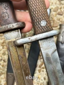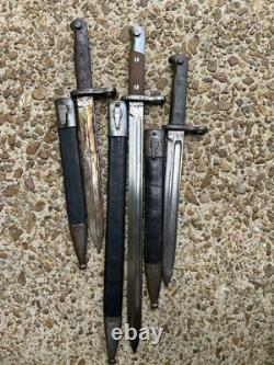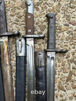 Lot Of 3 WW1 To WW2 Era Mauser Rifle Bayonets And Scabbards