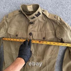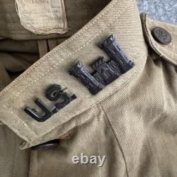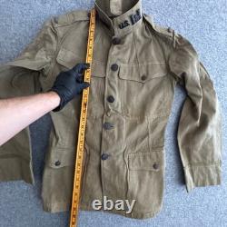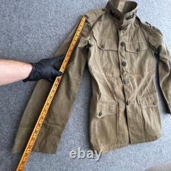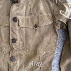 Looks like this was an officers jacket with the pins and the stripes on sleeves. One of the hooks on the collar is broke.