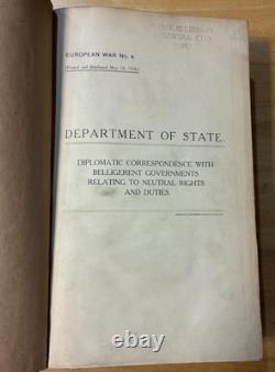 State Dept - Diplomatic Correspondence With Belligerent Governments Reference Books. Library Editions - Volume 3 and 4.