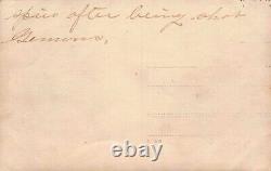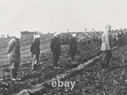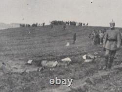 This series of 3 real photo postcards feature the blind folding and execution of spies by German Soldiers. #1 says "Spies being blind folded to be shot, German picture". #2 says "Spies lined up to be shot", and #3 says "Spies after being shot (by) Germans". These three cards were from an album made by Captain Dr.