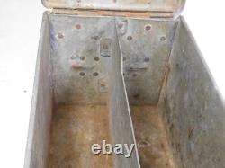 This is an original German steel ammo box for the MG09 heavy machinegun. It is the pre-1918 model made from heavy steel and the dual catch closure latch. The box was intended to hold two belts of 7.92 ammunition. The interior still retains the divider which is a rare feature as most of the time this divider was removed for post-war use as a tool box. Overall condition is sound and usable.