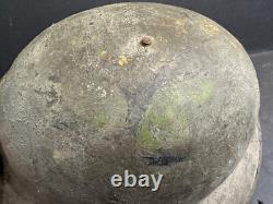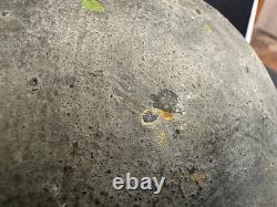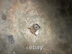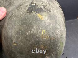 The red insignia on the front appears to be at least 5" across, and the black circle on top about 6" in diameter. I know there were several Divisions that used black circles.