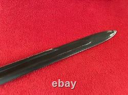 WWI M1905 Springfield Bayonet - Dated 1906. Condition: Excellent, with no damage to the blade or sheath. There are no cracks, chips, or other damage to the wood handle, and the blade is free of any nicks.