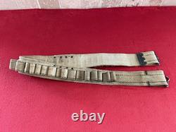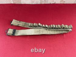 Original WW1 Trench Shotgun Belt - Mills 1917. Condition: Excellent with no holes, tears, frays, or other damage, and all 32 of the cartridge loops are present and without damage. The hardware works as it should, is largely free from oxidation/corrosion, and the belt is boldly stamped Mills July 1917. Overall, this rare ammunition belt is in amazing shape considering its age and potential battle use. These original WW1 shotgun belts are very difficult to find, especially in this condition, so don't miss out on this one!
