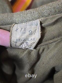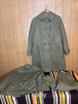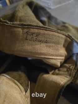 WW1 US Army Complete Wool Uniform Tunic Breeches Overcoat Named. Good overall condition, has some moth holes, 3 pieces included, Tunic, pants, and Overcoat.