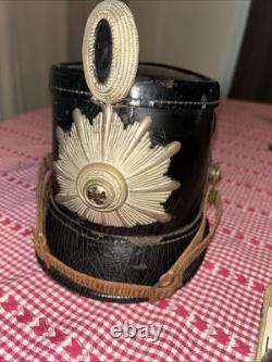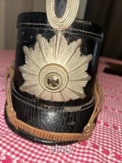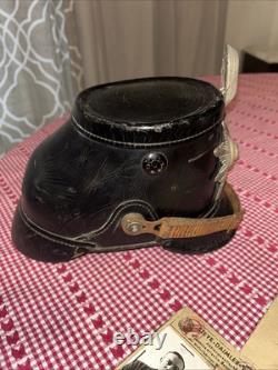Ww1 police Weimar era 1920 ish tschako very nice marked example. Almost 3 marks in the inside and one on the brim. Very hard to find one like this in this condition has an old style reproduction chinstrap just for looks. You can take off if please.