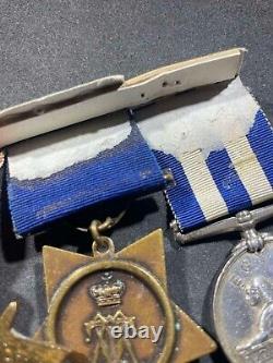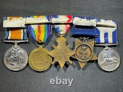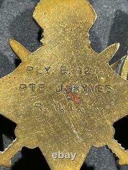 This is a nice ORIGINAL British Imperial British Medal Bar. It has 5 medals all named to a Private J. Rymes, Plymouth Division B, Royal Marines Light Infantry. Medals include examples issued both prior to WW1 and at the end of WW1.