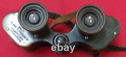 On the rear next to the 2 adjustable focus pieces are markings for makers, Shaw & Sons LTD, Leeds, 1917. Other surface marked Binocular Prismatic No. Optics are clear but needs some cleaning. Reticule marking on the lens for deflection. See my other listings at qm7607lu.
