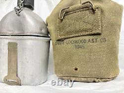 And a WWII year (1945) baker Lockwood A&T Co. Canteen with canteen cover and hook for belt attachment. All items come from a smoke free and pet free home.