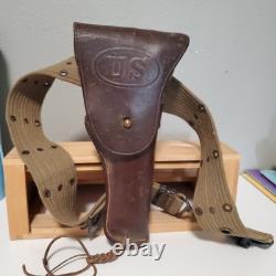 This is an original WWI US Army leather holster dated 1918, manufactured by G&K Graton & Knight. The holster comes with a belt and is designed for display or collection purposes. It is a rare and valuable item for enthusiasts of militaria and WWI memorabilia. Please see photos for condition.